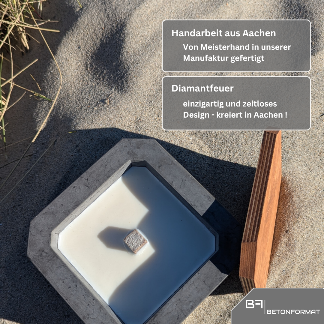 - 🕯 LANGLEBIGER HOLZDOCHT – FÜR STUNDENLANGES BRENNEN Der robuste Dauerdocht aus Holzfaser „ernährt“ sich vom Wachs – solange du nachfüllst, brennt dein Diamantfeuer immer weiter. Ein elegantes und zugleich praktisches Tischfeuer für laue Sommerabende oder kühle Herbstnächte.