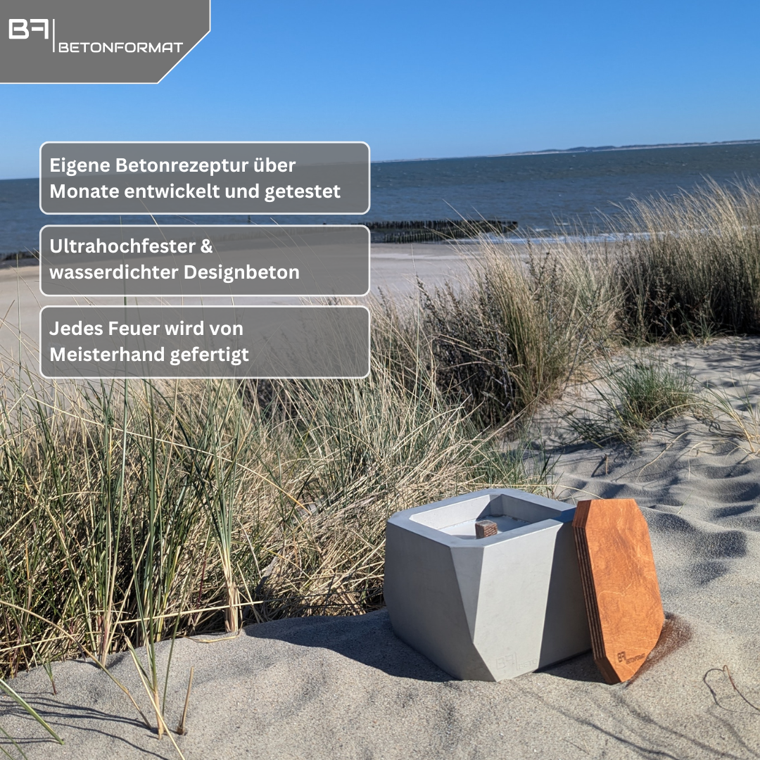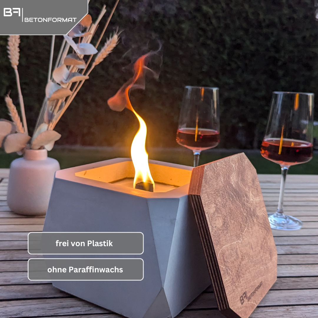 - 🌿 NACHHALTIGES DESIGN – AUS BETON UND RECYCELTEM WACHS Wir setzen auf Minimalismus mit Mehrwert: Handgegossener Beton trifft auf ressourcenschonendes Wachsrecycling. So entsteht ein Outdoor-Feuer, das Umweltbewusstsein und Ästhetik vereint.