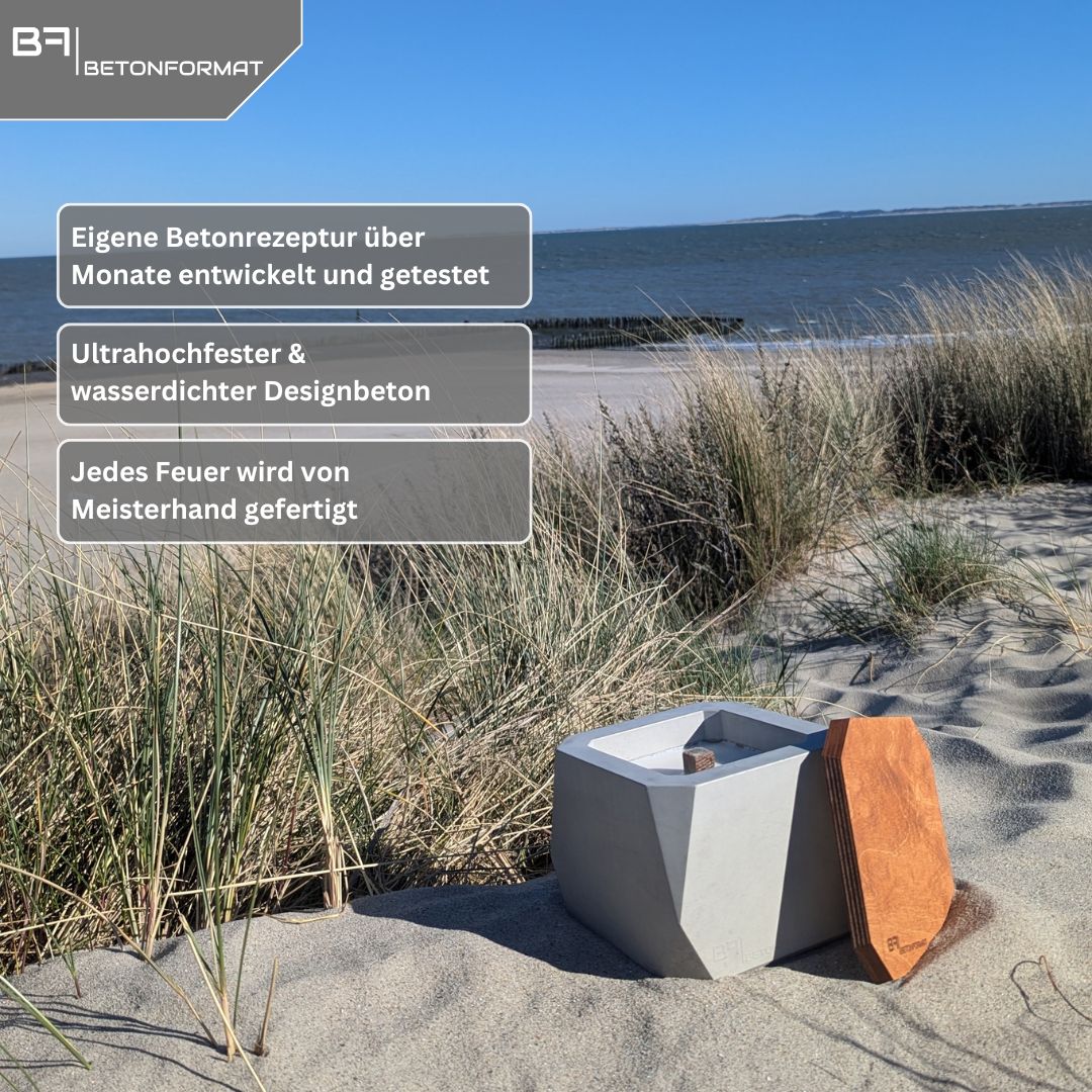 - 🌿 NACHHALTIGES DESIGN – AUS BETON UND RECYCELTEM WACHS Wir setzen auf Minimalismus mit Mehrwert: Handgegossener Beton trifft auf ressourcenschonendes Wachsrecycling. So entsteht ein Outdoor-Feuer, das Umweltbewusstsein und Ästhetik vereint.